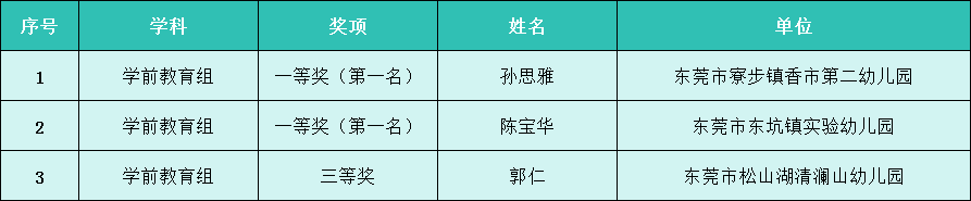 第五届广东省中小学青年教师教学能力大赛学前教育组获奖名单(东莞)