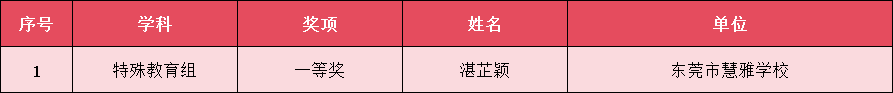 第五届广东省中小学青年教师教学能力大赛特殊教育组获奖名单(东莞)